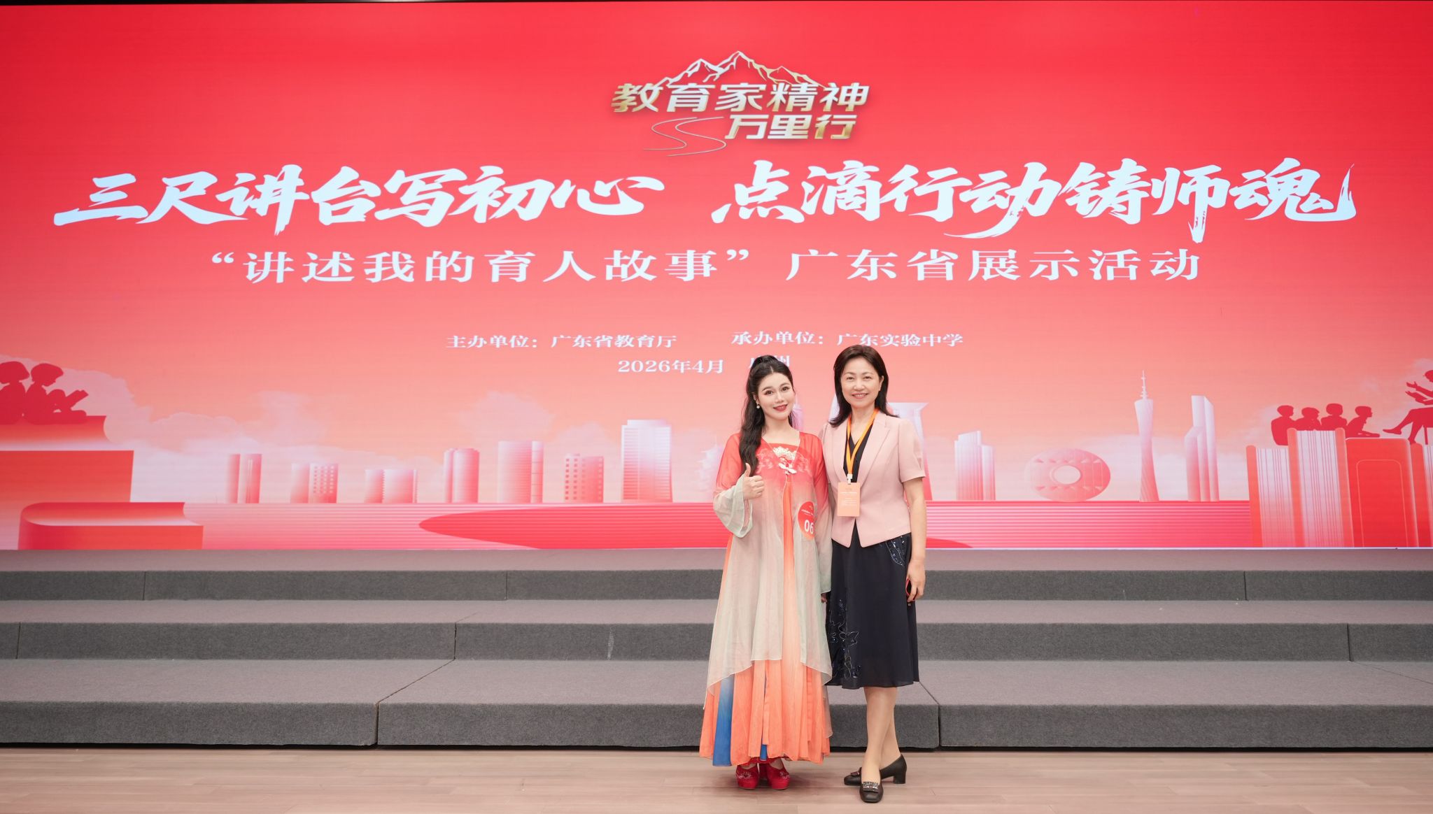 4月14日,2026年广东省“讲述我的育人故事”现场展示活动在广东实验中学白云校区举行。本次活动由省教育厅主办,以“三尺讲台写初心,点滴行动铸师魂”为主题,省教育厅二级巡视员方树生出席活动并致辞,省教育厅相关处室及师生等500余人参加。